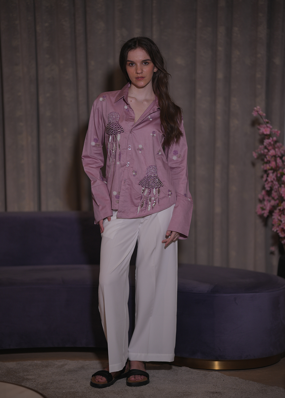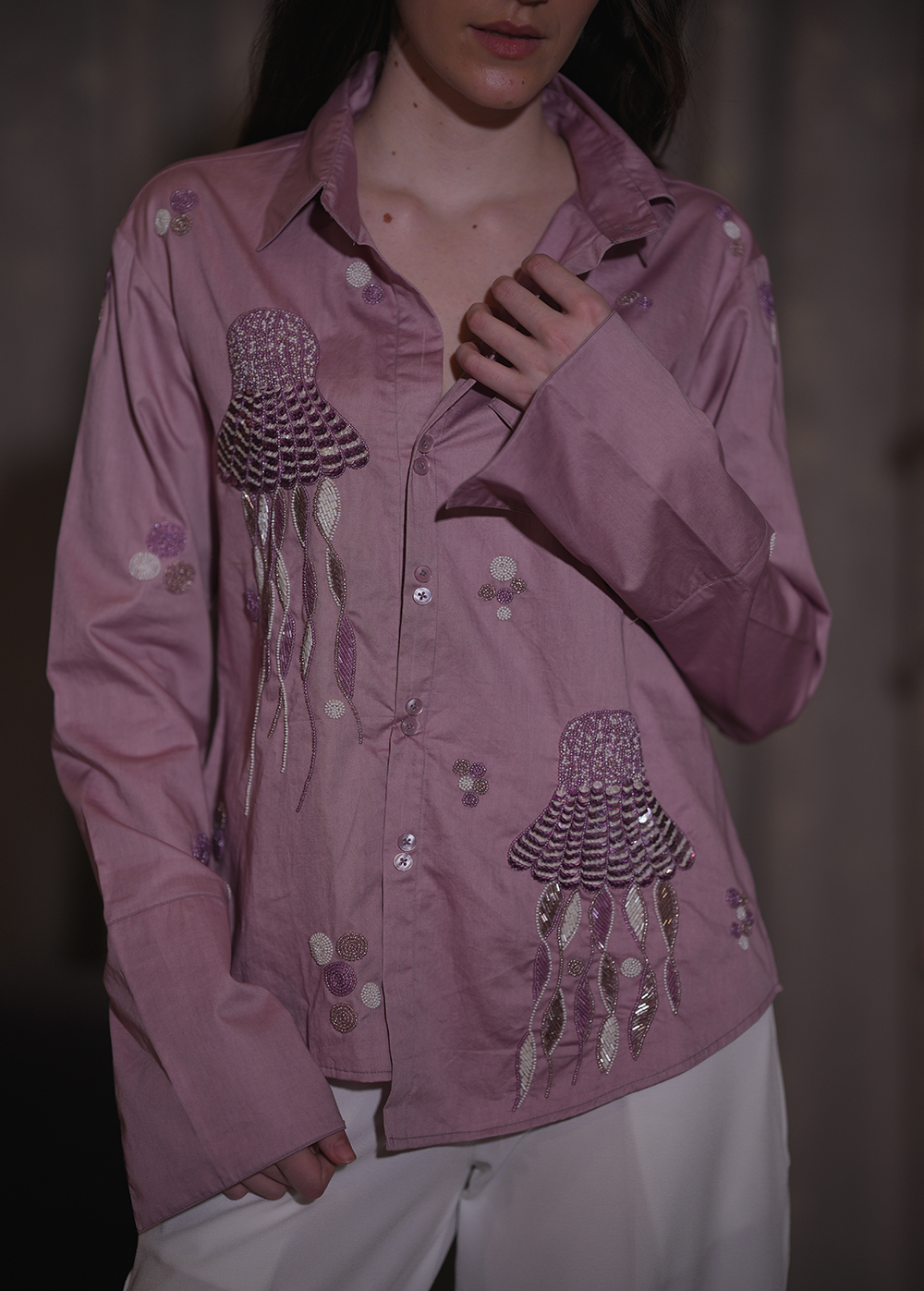 The Kandy Embellished Shirt features intricate handwork detailing—elegant, eye-catching, and perfect for party nights.
