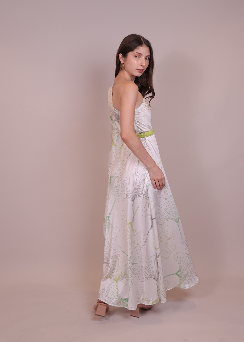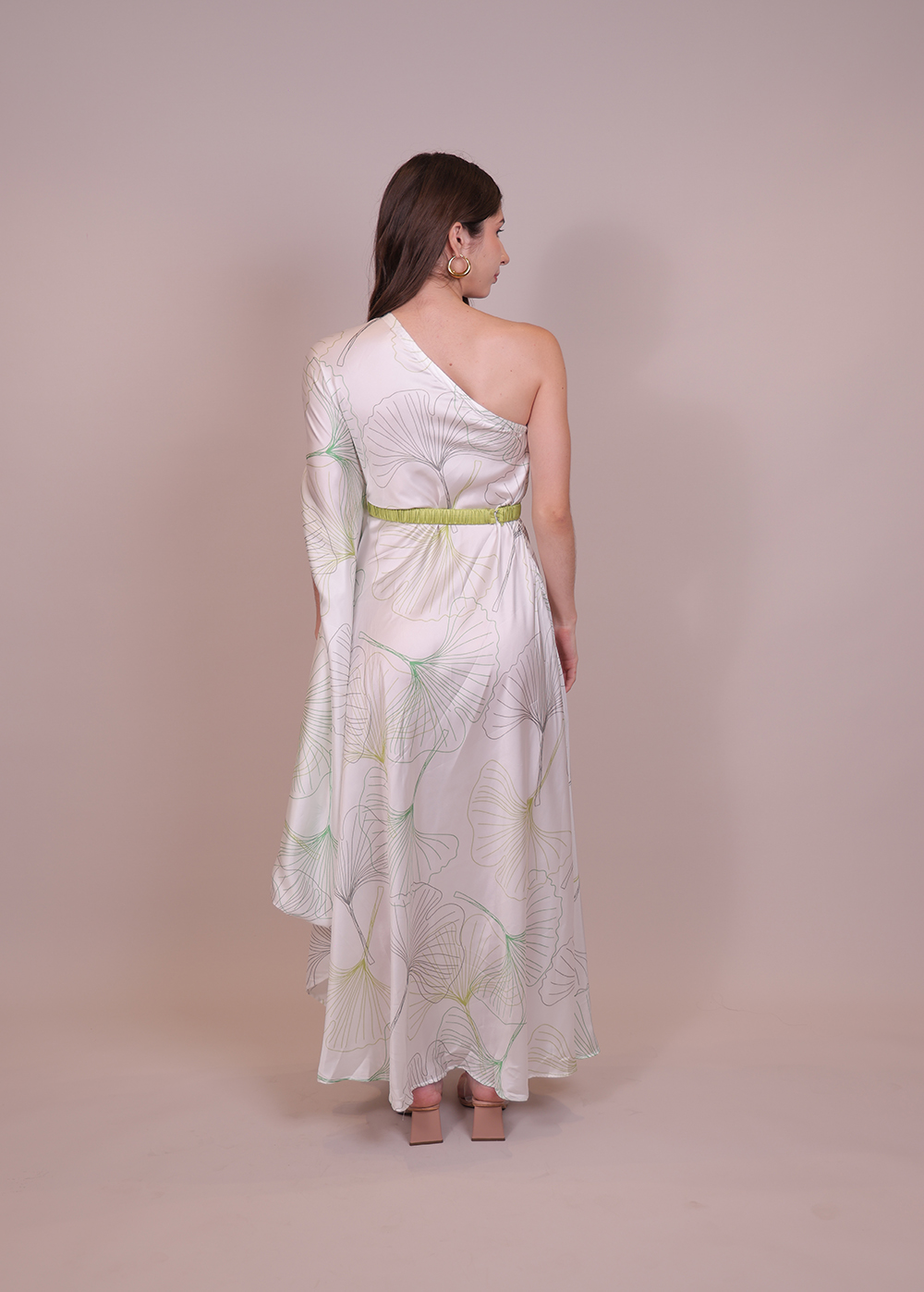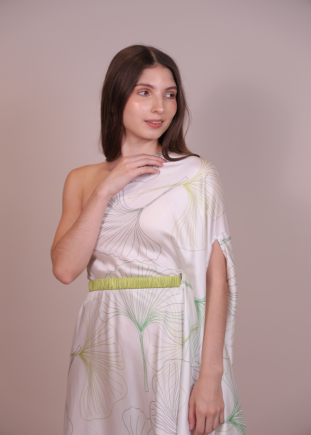 The Margo Printed Kaftan is a one-shoulder, breezy silhouette with a detachable belt—sophisticated, flowy, and perfect for elevated resort lounging.