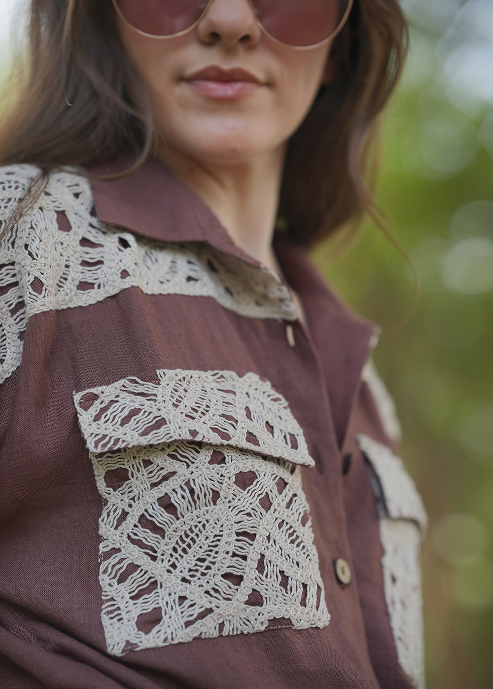 The Sophia Playsuit is a chic brown resort piece featuring delicate patch detailing—effortlessly stylish and perfect for sunny escapes.